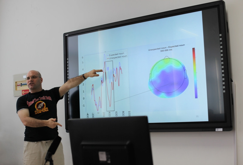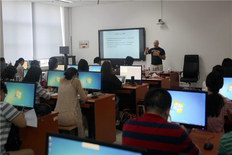 为进一步落实学校国际化战略、加强国际教育合作,提升威尼斯人app 课程国际化建设水平、完善课程体系,威尼斯人app于5月30至6月2日期间成功举办了“语言研究与ERP技术”课程国际化项目系列讲座。课程主讲人Stephen Politzer-Ahles博士,美国堪萨斯大学副教授,牛津大学博士后,主要研究方向为认知语言学与认知脑科学,曾在Language, Cognition and Neuroscience等国际核心期刊发表论文数十篇,主持国际合作项目数项,是国际语言与脑神经认知科学研究领域具有影响力的知名学者。 该课程在国内外国语言文学研究生课程体系架构中具有开拓性和创新性,内容涵盖认知语言学与脑神经认知科学领域的国际前沿研究内容和及其研究方法,具体包括:1. EEG简介,如EEG与fMRI的区别、EEG与ERP的关系,以及ERP的特征;2. EEG的不足与解释,如ERP成分N400的特征、N400的本质,以及现有研究对N400的错误理解;3. EEG数据收集与分析,如脑电仪器基本操作、基线的定义与原理、伪迹的定义与鉴别;4. 实验结果处理标准,如基线校正、去除伪迹、平均化,以及校正伪迹等;5. R-语言介绍,如R-语言工具的优势、基本算法及应用范围等;6. 基础ERP脑电分析,如总平均、被试个体差异、共振峰的定义与鉴别、主要ERP成分;7. 高级ERP脑电分析,如排列测试、回归等。除此之外,还有实验室具体实验操作演练,包括被试准备工作(如佩戴电极帽、打电极膏等)、数据收集(行为数据收集、脑电数据收集)、数据处理(数据融合、去伪、校正等)。威尼斯人app 全体科学硕士生、威尼斯人app 语言学团队成员和相关教师全程参加听课、学习,同时课程还吸引了来自北京外国语大学、南京师范大学、南京大学、山东大学、青岛海洋大学、山东师范大学、曲阜师范大学、山东理工大学等国内10余所高校师生。大家纷纷表示,该系列讲座具有国际前瞻性,内容深入浅出,既有理论讲解、数据分析、前沿统计方法的讲授,又有具体的实验操作方法,大家获益匪浅。 课程国际化项目的开展对威尼斯人app 课程建设、人才培养、教学改革等多个方面均有推动与促进作用,具体体现在以下几方面:第一,项目扩大了威尼斯人app 在学界的影响,同时也提升了学校的知名度和影响。通过项目的开展,威尼斯人app 与其他高校的相关研究领域的师生进行了充分的交流,扩大了威尼斯人app ERP神经认知实验室在学界的知名度与影响;第二,项目开拓了我校师生的学术视野,为威尼斯人app 相关领域的研究储备了后备力量。威尼斯人app 师生对国际前沿研究领域有了更深的认识,讲座期间能够就自己存在的问题与专家进行及时的咨询。通过建立相应的合作机制,项目结束后也能与专家进行在线咨询与反馈。项目的开展为威尼斯人app 师生搭建了更高的学术交流平台,能够就自己存在的问题与疑惑与学界专家进行的沟通与反馈,进而提升自己的科研水平与能力;第三,项目对威尼斯人app 研究生课程体系的完善与提升具有较好的推动。通过聘请国际知名学者开设的前沿性的选修课,提升了威尼斯人app 现有课程体系的国际先进性。脑神经认知科学方面的课程在国内高校语言学研究生课程领域内属于短板,我校课程国际化项目的开展,很好的完善了威尼斯人app (乃至国内)现有的研究生课程体系,不仅使我校相关领域的师生受益,也使国内其他高校的学者受益;第四,项目对威尼斯人app 的研究生教育国际合作与交流工作的拓展具有一定的推动作用。通过系列前沿讲座的开展,威尼斯人app 师生与专家的交流与反馈,能够为威尼斯人app 组建相关领域的研究团队提供较高的平台,与聘请专家所在单位建立常规化的合作和交流机制,进而有效地拓展威尼斯人app 乃至学校的研究生教育国际合作与交流工作;最后,项目对威尼斯人app 提升科研能力、凝练研究方向具有很好的推动作用。系列前沿讲座的开展,可以有助于威尼斯人app 进一步凝练研究方向、提炼特色,提升学科优势,打造科研团队,增强威尼斯人app 的科研实力和学术竞争能力。 |