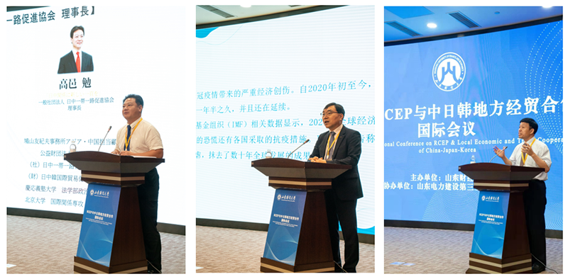 7月22-24日,RCEP与中日韩地方经贸合作国际会议在青岛举行。日中一带一路促进协会理事长高邑勉、大韩贸易投资振兴公社大中华地区总代表洪彰杓、中国社会科威尼斯人app 世界经济与政治研究所副所长邹治波、山东电建三公司总经理王礼出席会议并致辞,韩国对外经济政策研究院北京首席代表李尚勋、韩国交易所北京首席代表姜永升、北京语言大学国别和区域研究院院长罗林、中华日本学会会长高洪、中国日本经济学会常务副会长张季风、山东省人民政府研究室副主任赵昌军、省贸促会秘书长陈彤等领导和专家出席会议。会议由我校校长、中日韩研究院院长赵忠秀主持。