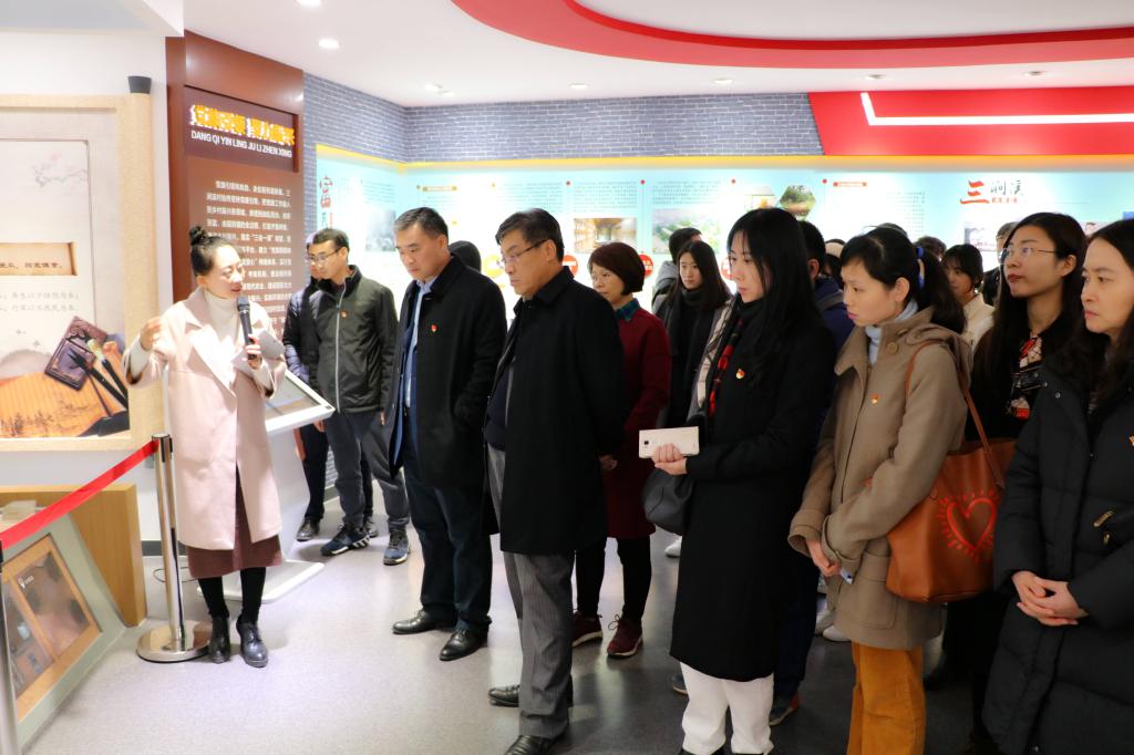 在讲解员的带领下,我们的学习团队先到了三涧溪乡村振兴展馆。讲解员向我们展示了习近平总书记在视察三涧溪村时留下的一些珍贵的图片资料。此外,通过纪实影像、图片视频等多媒体形式详细了解到了三涧溪村的历史人文,及在党员带领下从弱到强完美蜕变的过程,让所有人感受到了党支部领导在带领群众脱贫致富时的辛勤付出与不易。