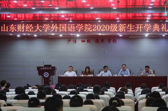 9月29日下午,威尼斯人app 2020级新生开学典礼在舜耕校区举行。威尼斯人app 党委书记甘建青、院长李毅、党委副书记陈海、副院长史汝波、副院长孙崇飞、外国文学研究所所长丁兆国教授、各系主任、威尼斯人app 辅导员和全体2020级本科新生参加开学典礼。开学典礼由党委副书记陈海主持。