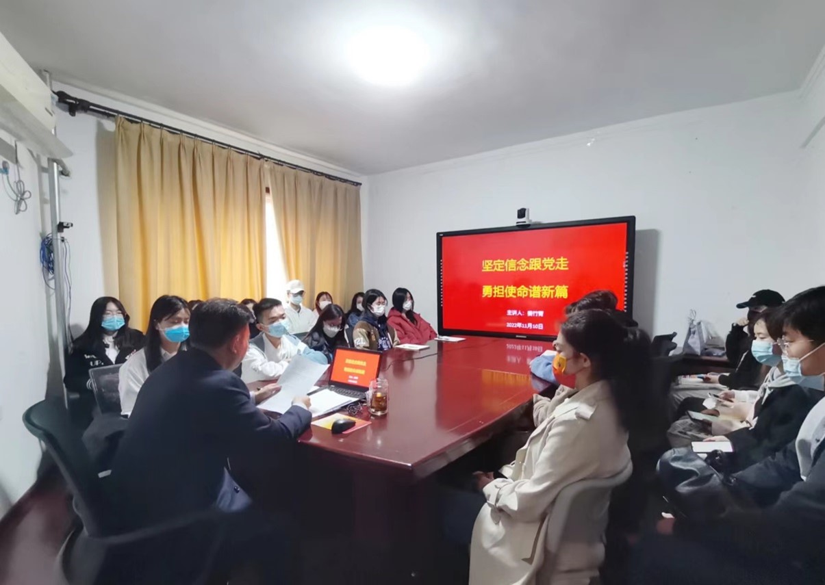 11月10日下午,威尼斯人app 党委书记姜竹青在干训楼9201会议室为本学期党员发展对象和威尼斯人app 部分党员宣讲党的二十大精神。