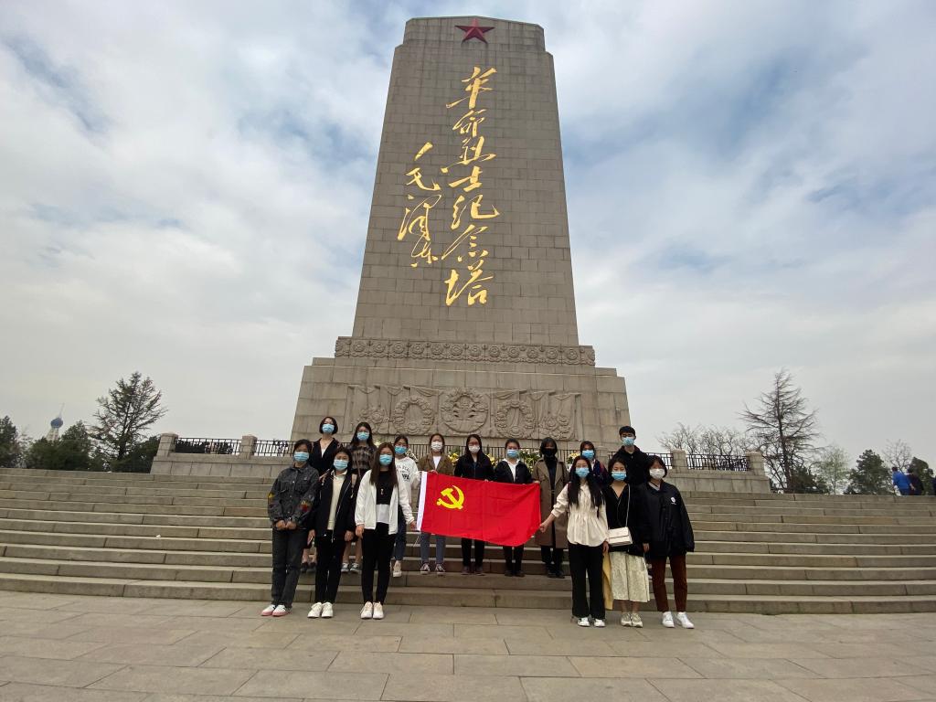 四个学生党支部的党员、入党积极分子共50余人在英雄山脚下列队集合并参观了济南战役纪念馆、济南革命烈士陵园。大家一同爬上英雄山,革命烈士纪念塔屹立在英雄山山顶,塔身南北两面有毛泽东题写的七个鎏金大字“革命烈士纪念塔”,学生党支部书记齐文茜、谢清伟在塔前向大家讲解了革命烈士纪念塔的光辉历史。