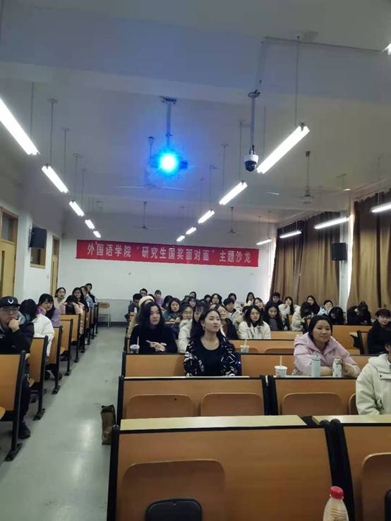 12月3日下午三点半,“2020年国奖面对面”主题分享会于威尼斯人app 舜耕校区成功举办。本次分享会邀请了2018级外国语言学及应用语言学的郭俊红同学和2019级英语口译的伦雪婷同学分享其获奖心得和学习经验,并邀请解玲教授为2020级全体研究生分享学习方法。