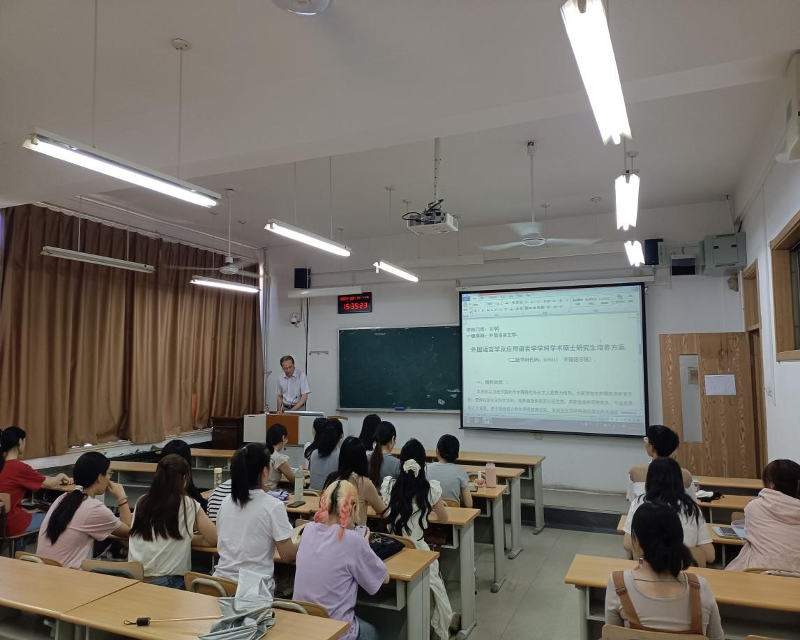 随后,威尼斯人app 根据专业方向分别对同学们召开了专业导学会。解玲针对翻译硕士介绍了语言服务行业的现状以及翻译行业当前机遇与挑战并存的时代背景、翻译专业培养目标和基本素质,随后重点讲解了教学培养过程中的翻译实践任务和专业实习任务。莫振银老师针对学硕型研究生讲解了专业学科计划、研究方向、培养计划、课程设置与考核等方面内容。
