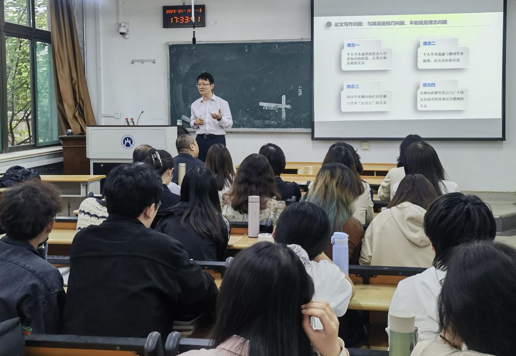 邓耀臣教授首先从期刊目前发展现状入手,说明个人需求与期刊需求之间的关系,强调投稿前需了解自己所在学科不同期刊的办刊特色。邓教授从期刊视角提出目前外语类期刊论文写作与发表面临的五个主要问题,包括选题缺乏“问题意识”,文献综述重点不突出,研究设计优缺点、研究方法交代不清,分析讨论缺乏深度与创新性,以及论文本身缺乏学术性。随后,邓教授针对以上五个问题提出了相应的解决措施,如选题应符合期刊定位,兼具国际视野与本土情怀,通过学术积累及对国际前沿研究的关注,提升自身的问题敏感性。邓教授还以实际文章为例,向大家展示了引言及文献综述的规范写法、语言表达及信息的准确性。邓教授强调“细节决定成败”,论文写作的每一环都至关重要。最后,威尼斯人app师生还与邓教授就相关内容进行了互动交流。