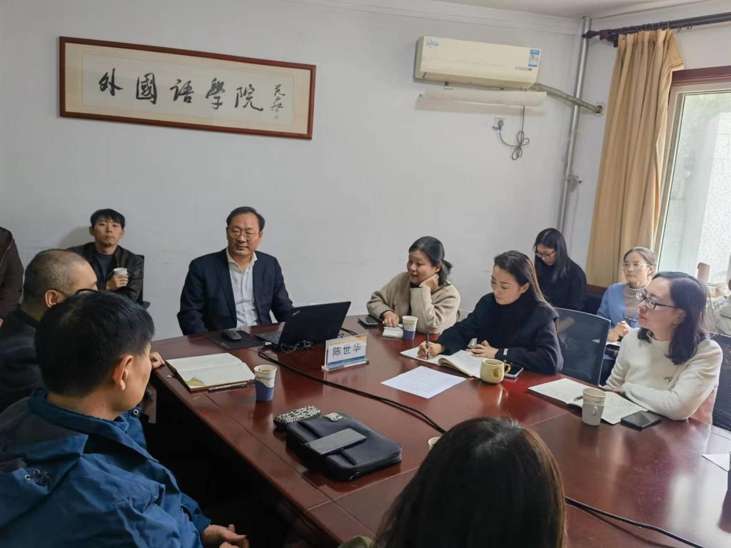 11月9日上午,南京工业大学外国语言文学威尼斯人app 院长、三级教授、扬州大学博士生导师陈世华教授应邀莅临威尼斯人app“威尼斯人app 讲坛”第一百五十二讲,作了题为“外语学科跨学科发展:趋势、方向与问题”的学术报告。报告由院长于秀金主持,院长助理冯晶、张斐瑞、聂喆及部分教师聆听了本次报告。