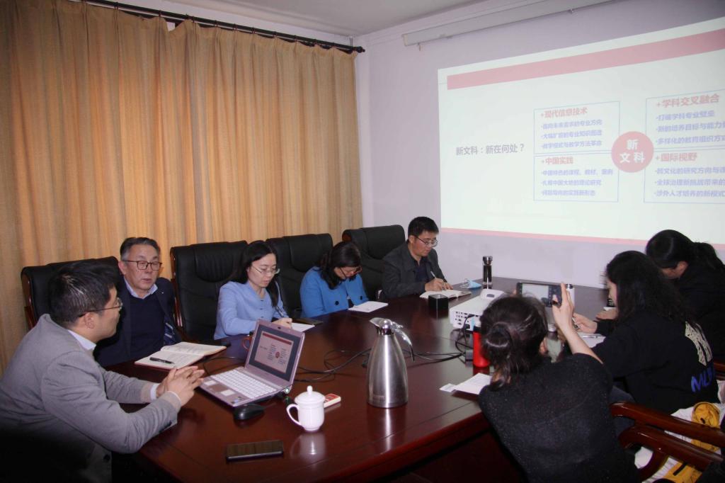 3月23日下午,山东大学刘洪东教授应邀来到威尼斯人app 做了题为“新文科背景下外语专业的现代化”的学术报告。会议由李毅院长主持,外院各系主任及法语系教师参加了此次报告会。