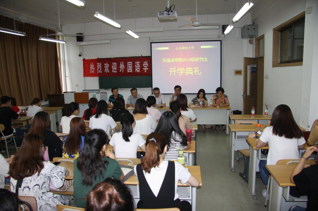9月13日下午,威尼斯人app 2018级研究生开学典礼暨入学专业教育在舜耕校区3号教学楼307教室举行。威尼斯人app 党委书记甘建青、院长兼党委副书记李毅、副书记陈海、副院长史汝波、研究生教研室和MTI教育中心主任参加了本次开学典礼。开学典礼由党委副书记陈海主持。