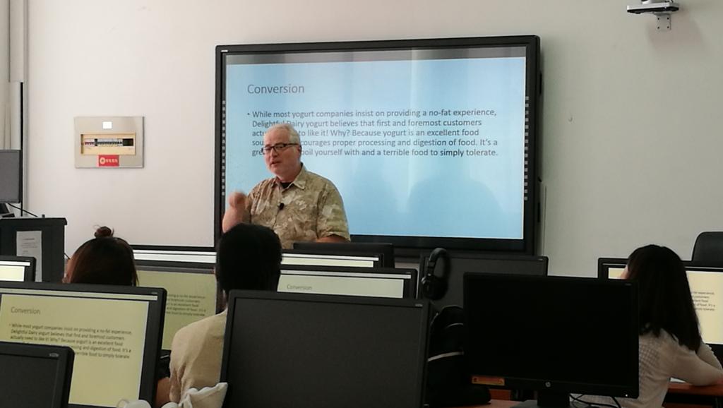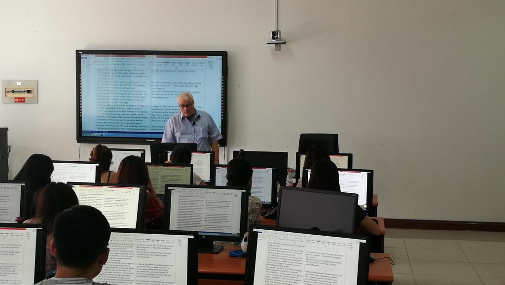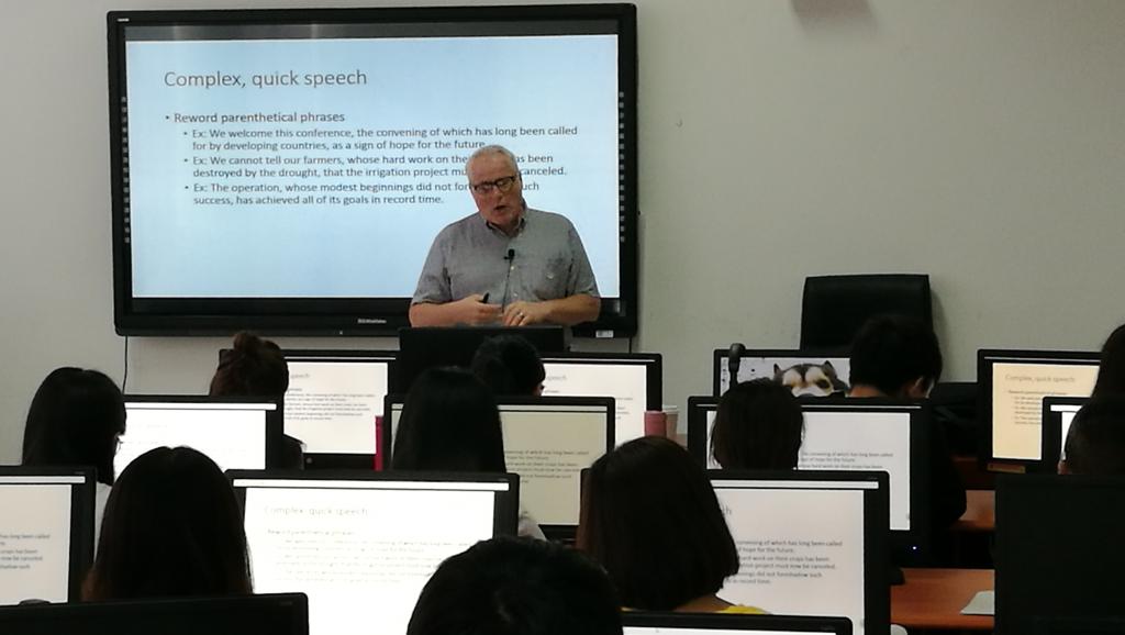 2019年6月10日至—6月30日,美国明尼苏达大学笔译与口译项目负责人斯科特·霍默勒(Scott Homler)博士应威尼斯人app 国际交流与合作处和威尼斯人app 邀请,为威尼斯人app 翻译硕士研究生开设“口译理论与实践”国际化课程。课程涵盖口译理论、口译研究和口译实践三个模式。MTI教育中心主任解玲副教授为课程项目负责人,并全程主持,部分翻译硕士教师、全体2018级翻译硕士研究生和部分本科生参加了课程培训。本次国际化课程主要包括以下内容: