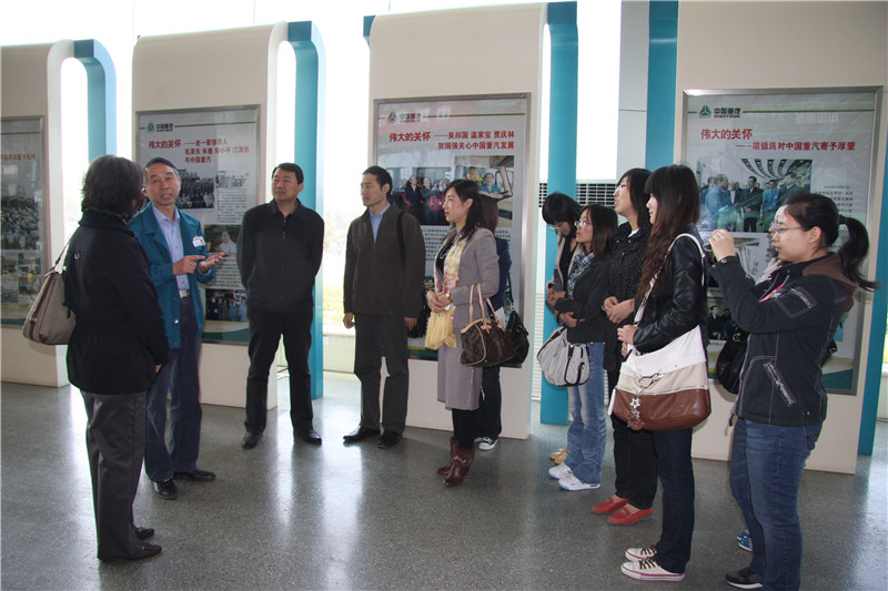 在该公司杨书记和相关人员的陪同下,大家实地参观考察了成品车展览厅及整个车辆生产线。在参观考察过程中,师生们就产品的英语标识、英语说明书及汉语标语的英译等进行了热烈讨论,提出许多建设性意见。考察结束后,大家和公司有关人员就外语和外语人才在汽车研发生产中的重要作用进行了座谈和探讨。