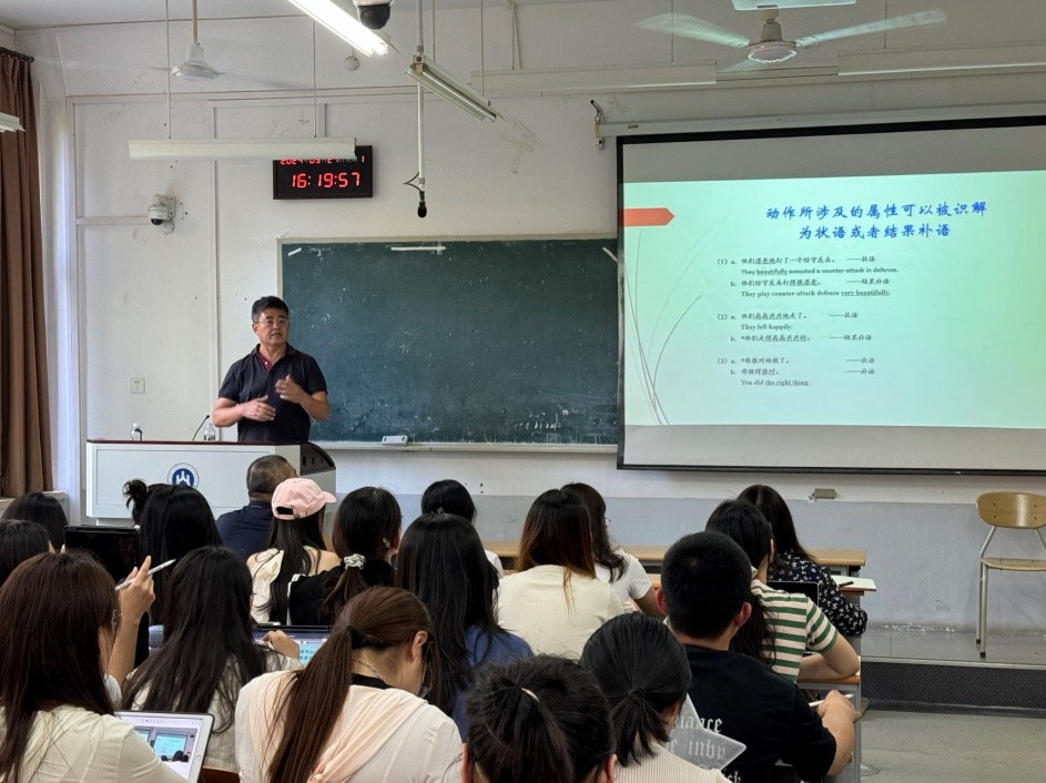 石毓智教授首先从日常生活中的语言现象和人类活动出发,阐释了“识解(construal)”的概念及其重要性。石教授指出,汉语和英语具有不同的语法系统,因此其使用者认知加工方式不同,“识解(construal)”的角度也存在差异,反映在语言中就是采用不同的语法结构或者句法成分来呈现相同的语义成分。石教授通过大量的语料,总结了汉语句子的组织信息原则,对比分析了现代汉语和英语两种语言中句法位置、动补结构、状中结构的语法整体特征,揭示了汉英语言之间的系统对应规律。石教授总结了汉英语法系统差异对认知的影响,即一种语言的整体语法系统会对其使用者的认知产生制约作用,并一定程度上决定该语言使用者的认知,包括识解角度和认知敏感性。最后,石教授与威尼斯人app师生进行了互动答疑,围绕英汉语言差异、句法特征、特殊语言现象等问题进行了探讨。