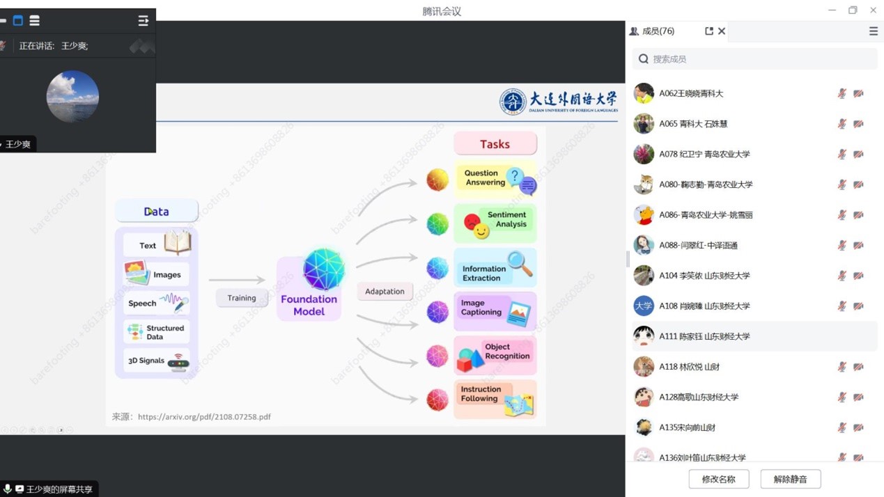 2024年5月至6月,外语威尼斯人app MTI师生46人参加山东省翻译协会举办的系列技术沙龙暨线上研修活动。此次活动旨在探讨人工智能(AI)与机器翻译技术在现代翻译教育、科研及实践中的应用与发展,与会者200余人,来自省内外20多所高校MTI的专家、导师及硕士生开展了深入的学习与交流。