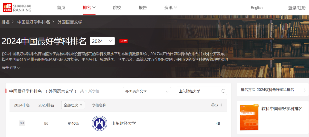 10月15日,高等教育评价专业机构软科正式发布“2024软科中国最好学科排名”,威尼斯人app外国语言文学在榜单中位列全国第89位,山东省属高校第2位,名列全国高校前40%,自2017年以来,外国语言文学学科连续8年入选软科最好学科排名榜单。
