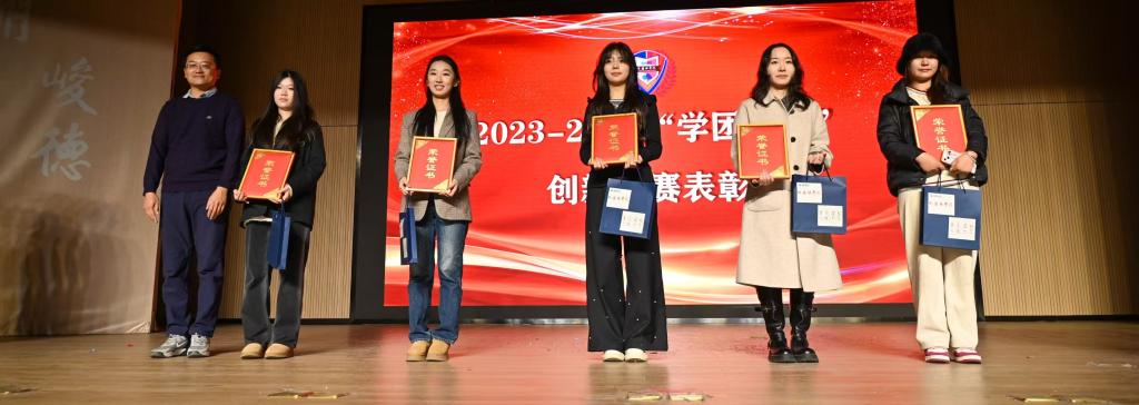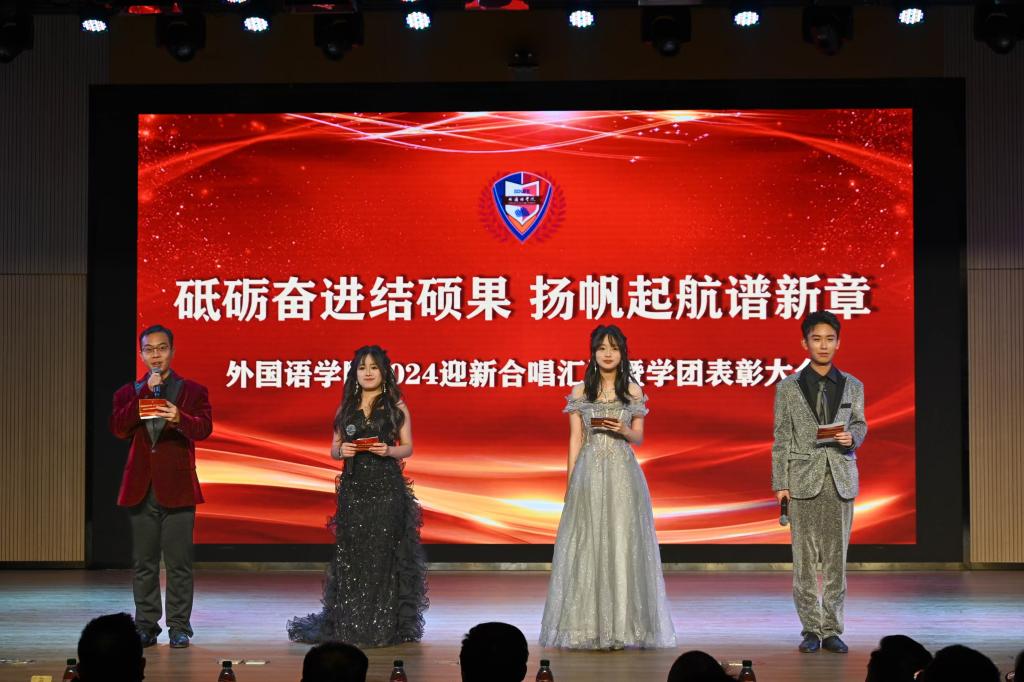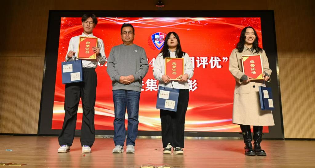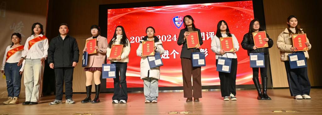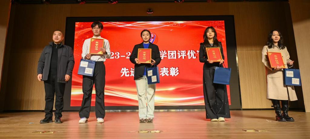 在精彩的合唱汇演间隙,威尼斯人app 还进行了 2023 - 2024 “学团评优” 先进集体和先进个人表彰。威尼斯人app 领导分别为获得 “学团评优” 先进集体、创新竞赛及先进个人进行表彰并颁发荣誉证书。这些受到表彰的集体和个人在学习、科研、社会实践等方面取得了优异的成绩,他们的事迹激励着在场的每一位同学在未来的学习和生活中奋勇向前。