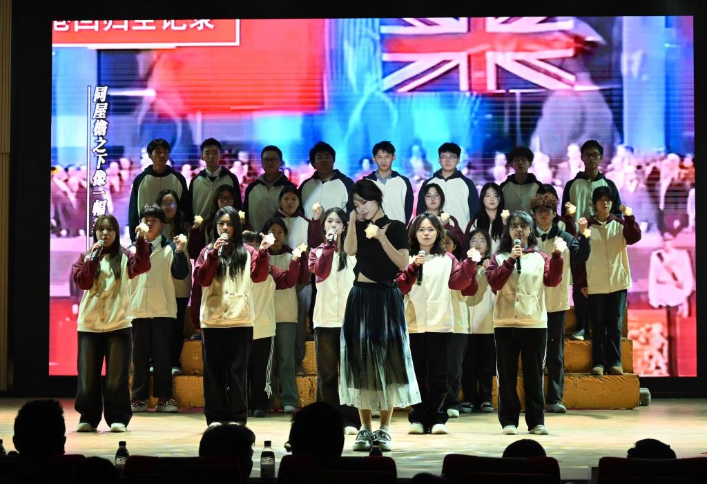 晚会的第三篇章以2024级英语1班的《紫荆花盛开》开篇,寓意着新生们如同紫荆花一般,在校园中绽放光彩。2024级日语1班的《向快乐出发》和商务英语2班的《我们的明天》,分别以不同的语言和旋律,表达了对未来的憧憬和期待。2024级商务英语4班的《我的未来式》和新生代表的《我的我的祖国》,以激昂的歌声和深情的演绎,展现了新生们对祖国的热爱和对未来的坚定信念。