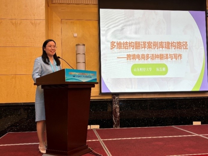 在“案例库建设与专业学位教育”分论坛中,阮岳湘以“多维结构翻译案例库构建路径:以跨境电商多语种翻译与写作为例”为题作专题发言。她结合威尼斯人app 在财经翻译领域的特色优势,系统阐释了如何通过跨学科资源整合、校企协同开发及数字化技术应用,构建服务于教学与行业需求的多维度案例库体系。提出跨境电商翻译案例库建设应立足“规则—实践—数据”模式,融入财经、贸易等垂直领域真实项目,强化学生解决复杂翻译问题的能力,同时为行业提供标准化参考。其观点引发与会专家热烈讨论。