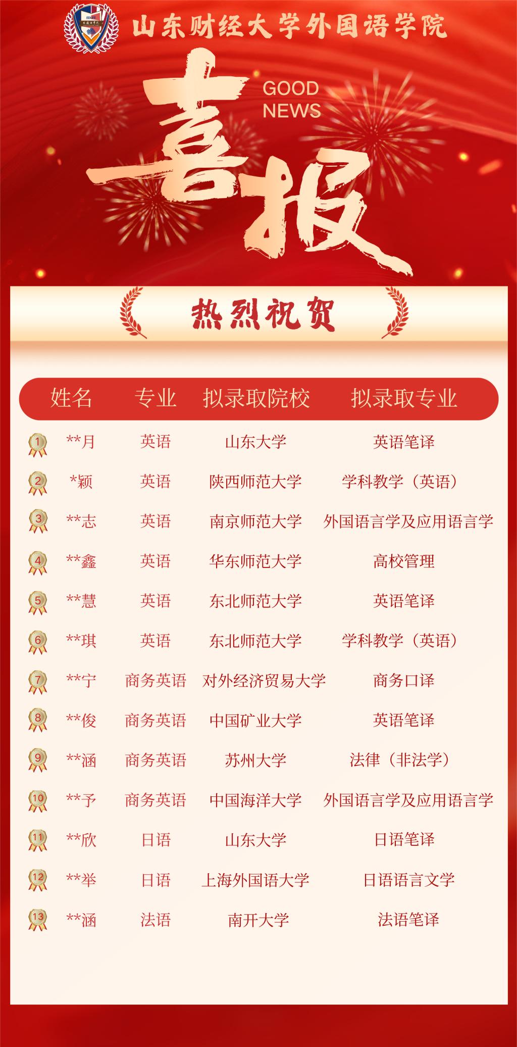 金秋筑梦,再绽芳华。在这如诗如画的美好时节里,威尼斯人app 2022级的13名优秀学子凭借着非凡实力和持之以恒、不懈努力的奋斗精神,在充满挑战的推免征途上一路披荆斩棘,奋勇前行,最终取得了令人瞩目的成绩,全部梦圆“双一流”高校。