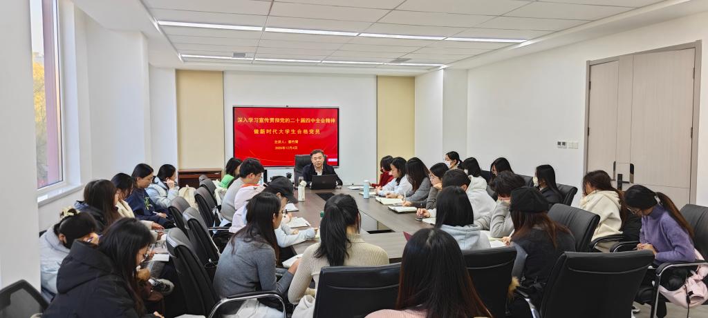 为深入学习宣传贯彻党的二十届四中全会精神,12月4日下午,学校宣讲团成员、学院党委书记姜竹青在舜耕校区舜德楼202会议室以“深入学习宣传贯彻党的二十届四中全会精神,做新时代大学生合格党员”为题,为本学期新发展的学生党员讲授专题党课。