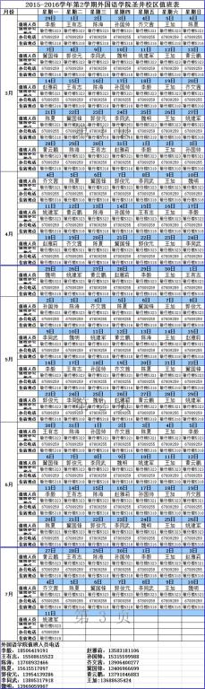 2015-2016学年第2学期威尼斯人app 圣井校区值班表