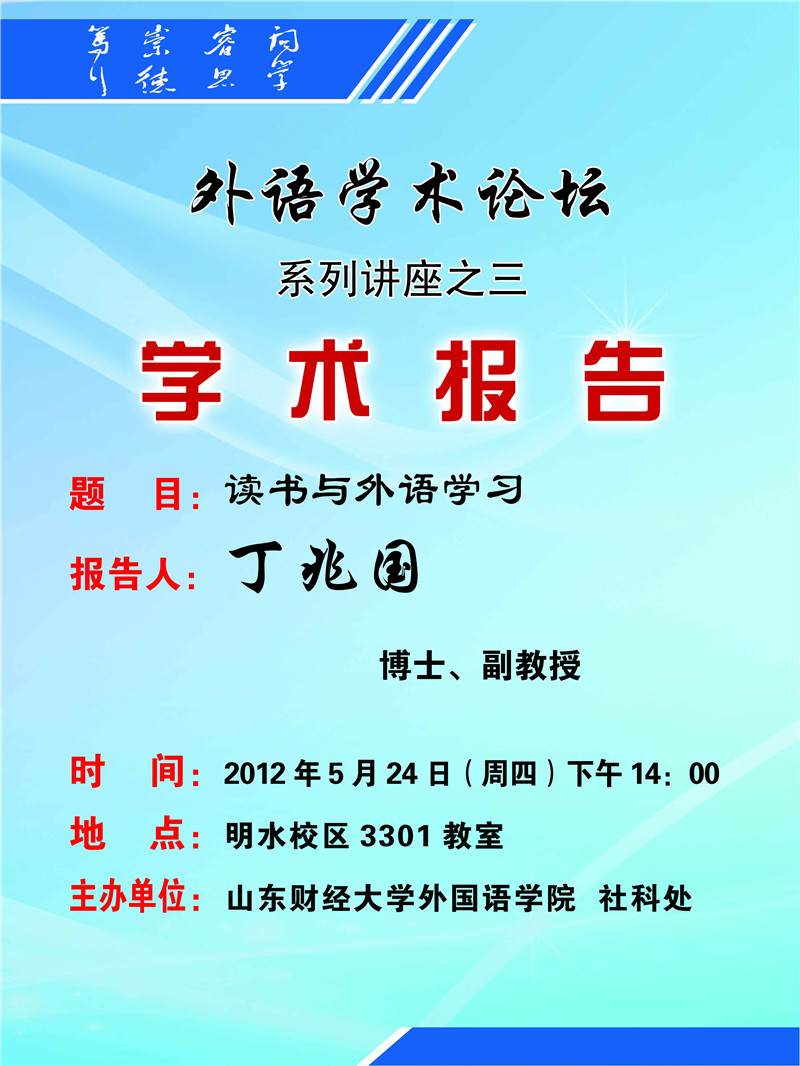 外语学术论坛—系列讲座之三 《读书与外语学习》