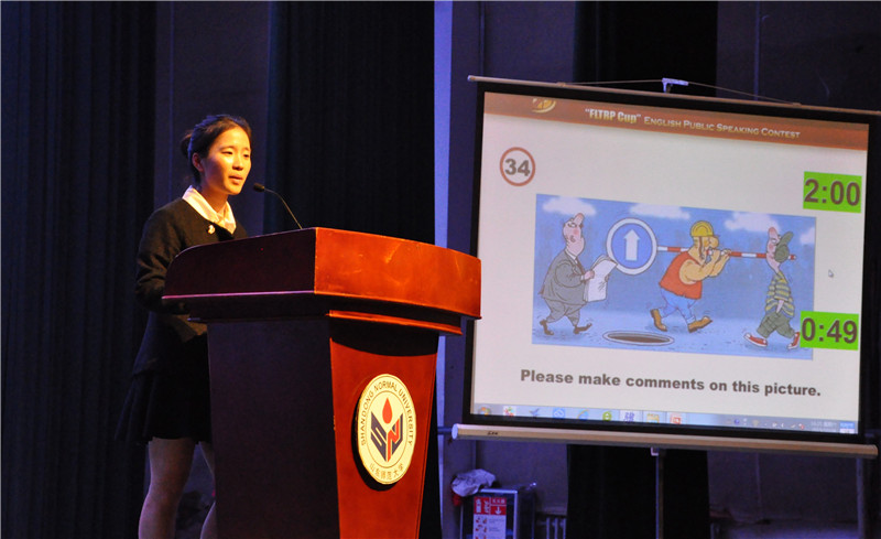 本届比赛首次由山东省教育厅、教育部高等学校大学外语教学指导委员会、教育部高等学校英语专业教学指导分委员会、外语教学与研究出版社联合举办,是面向全国高校开展的规格最高,权威性最强,认可度最高的专业性比赛之一。共有来自全省50多所高校的66余名优秀学生参加山东省复赛,参赛选手竞技水平普遍较高,比赛环节包括定题演讲、即兴演讲、拓展演讲、定时问答等。徐婷同学在比赛中,充分展现财大学子风采,以其地道的英语表达、丰富的英语知识和敏捷的思辨能力,博得了评委和现场观众的高度赞誉。