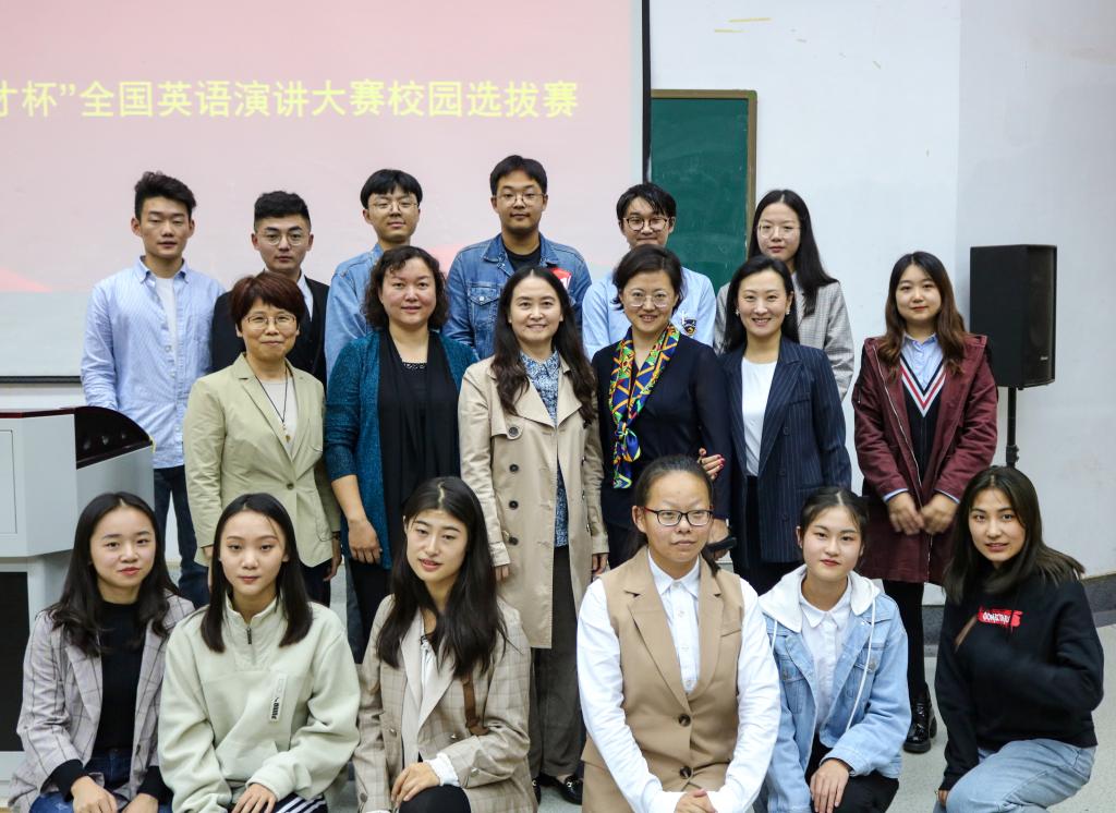 2019年10月11日下午,威尼斯人app 第六届外语技能系列大赛暨“外研社·国才杯”全国英语演讲大赛校园选拔赛在舜耕校区第二阶梯教室举行。高永红、马宏伟、王朋、解玲和张斐瑞五位老师担任评委,2018级英语专业于淑涵和2017级英语专业王哲娴担任主持人,威尼斯人app 各年级同学观摩了演讲比赛。